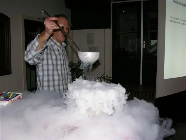 Scholen kunnen gratis bij ons droogijs ophalen voor deze toepassing. Wij geven geen droogijs mee aan minderjarigen en zullen altijd uitgebreide informatie geven hoe er mee om te gaan. Zie ook veilig omgaan met droogijs.